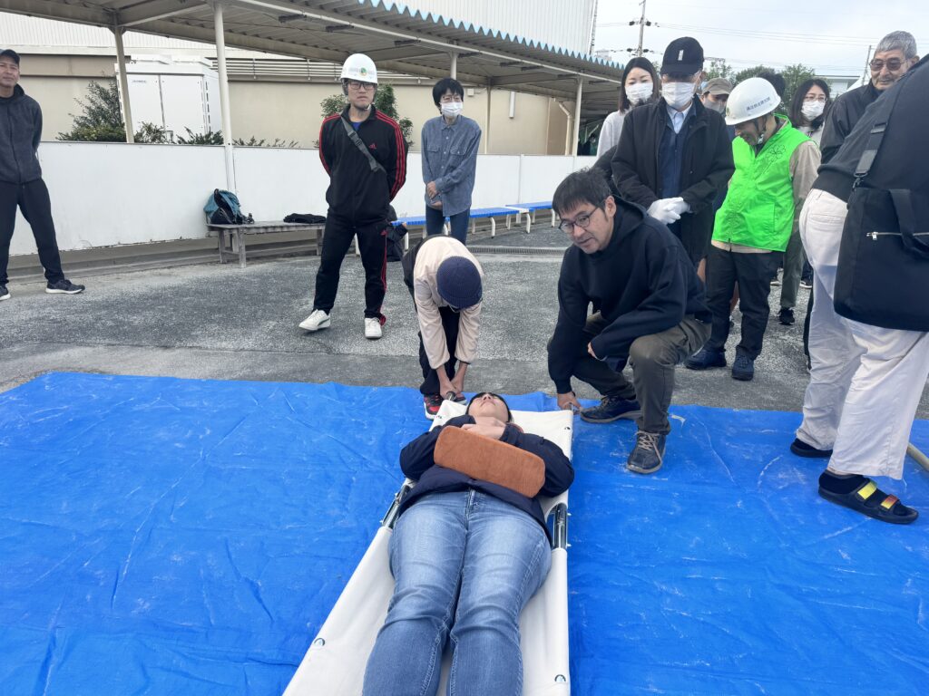 消火器訓練・AED・搬送担架・煙トンネルの訓練を実施し、防災への意識を再確認することができました。