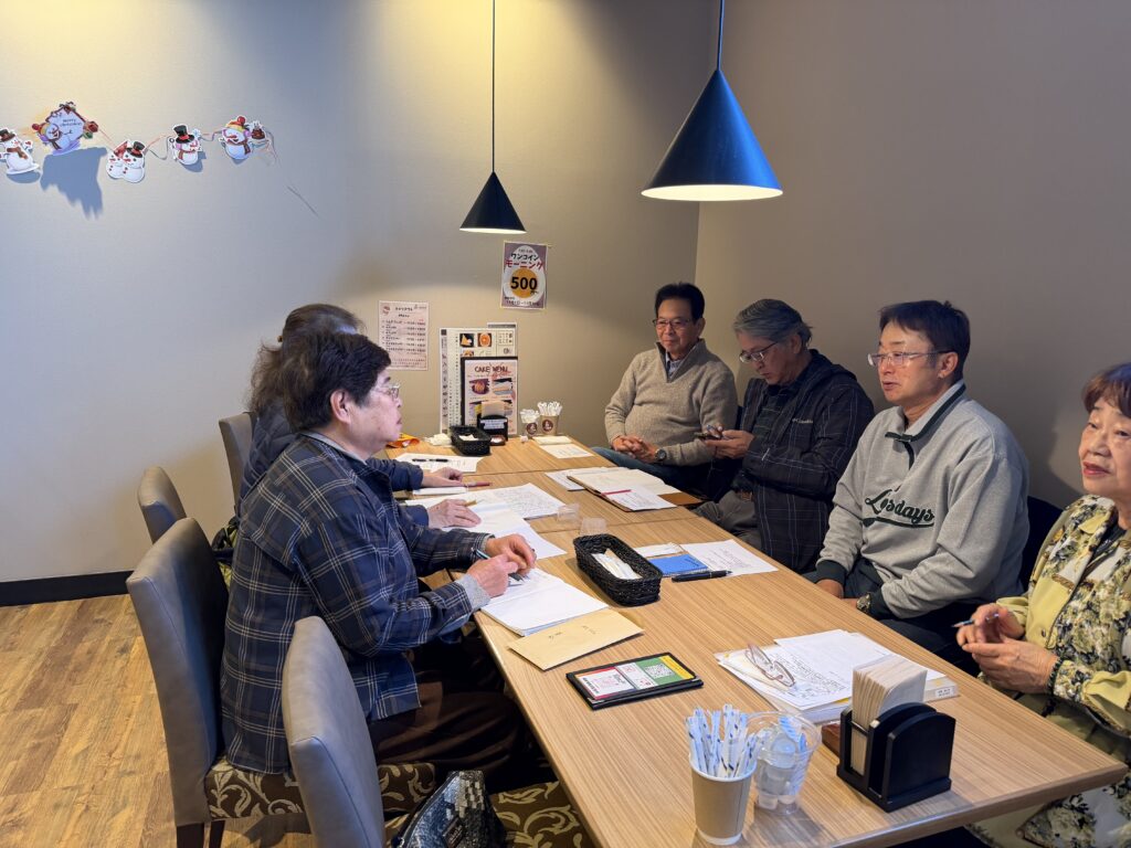 葵・高丘地区社協 ボランティア部mtg ブログ 2025.12.03 ブログ 葵・高丘地区社協ボランティア活動部にて、各町のボランティア部役員の皆様に集まって頂きました。 グラウンドゴルフ大会の反省 来年度の目的・目標・指針・手法を話し合いました。