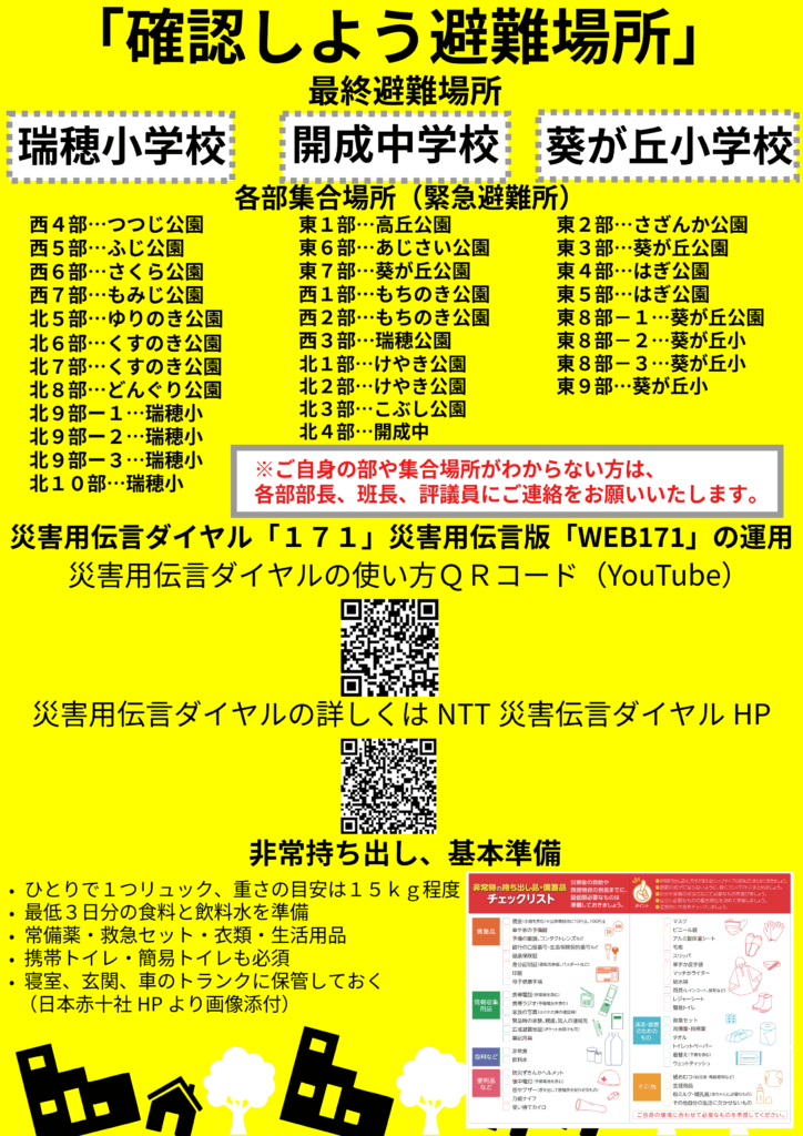 - 高丘自治会より防災訓練のお知らせ