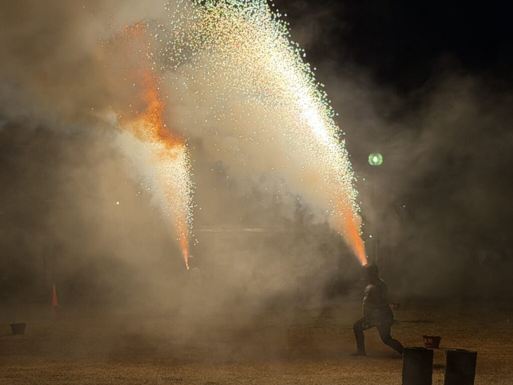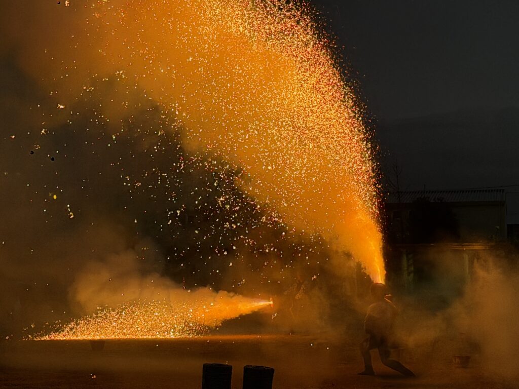 夕方には、雨もあがりメインイベントのである手筒花火をあげる事ができ、多くの子ども達が初めて見る