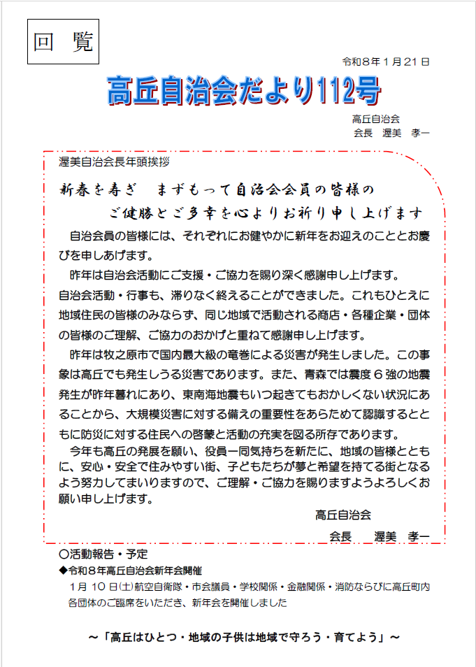 本年も、高丘自治会をよろしく申し上げます。